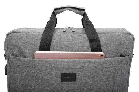 • w środku z jednej strony kieszeń na laptopa z drugiej wsuwane kieszonki na telefon i drobiazgi